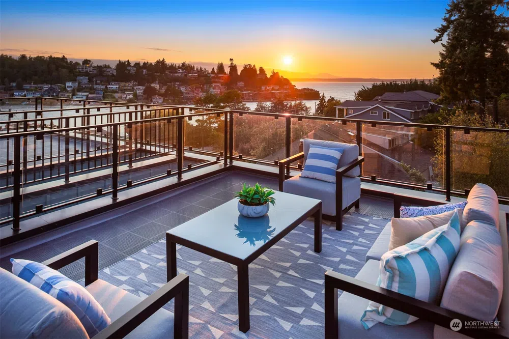 Unique Sunset Hill new construction home from local builder, Influx Development. Perched above the canal next to historic train station, watch the sunset over the Sound each night. Spacious and well-appointed main floor kitchen & living room. Second floor bedroom with adjacent full bath, perfect for home office or guests. Penthouse primary offers views of the canal and sound. Thoughtfully designed bath with hall access, ideal for guests while hosting on rooftop deck. Be the ultimate entertainer with 360-degree stunning views from your roof. This distinctive home is completed by off-street EV-ready parking, A/C & designer finishes. Blocks to Shilshole Bay, Chittenden Locks, Ballard & Magnolia for recreation, dining & nightlife.