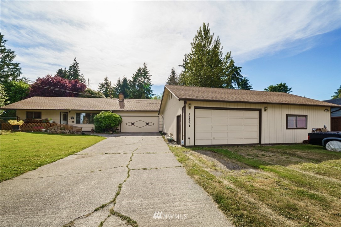 Great street appeal on this 1810 sq ft Rambler in a quiet non-tract dead end street! 3 bedrooms, 1.75 baths, a 2 car attached garage & a FOUR CAR detached & heated garage! New roof in 2017! Newer septic system. Gas furnace, gas stove & a gas dryer. Cedar siding and leaf filter gutters! Newer exterior paint. The living room has a wood burning fireplace. Dining room off the kitchen has a double door entry to the yard. Large rec room with a wet bar is a potential 4th bedroom. 3rd bedroom is over the garage and all other rooms are on the main level. A/C for the hot days ahead! Separate utility room. Partial views of Trout Lake & Mt Rainier from the front yard. Beautiful, fully fenced & private backyard. Fife Schools!